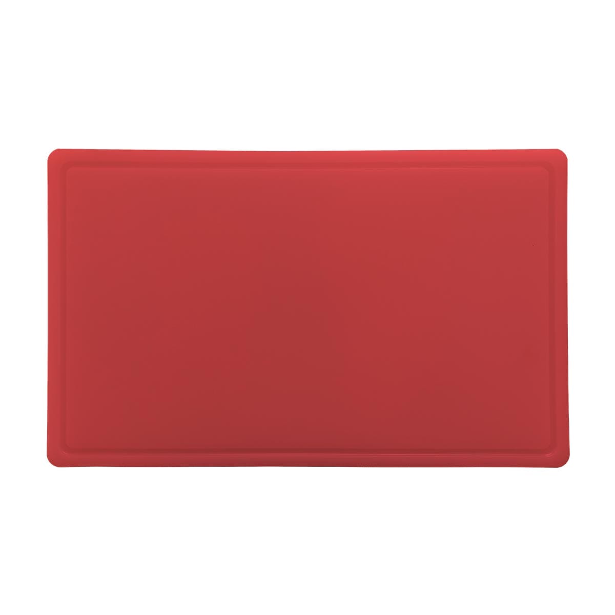 Πλάκα κοπής GN 1/1 53×32.5×1.3cm με κανάλι και ποδαράκια σιλικόνης κόκκινη